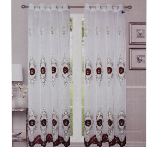 Lucinda Sheer Embroidery Curtain w/ Lining - Red